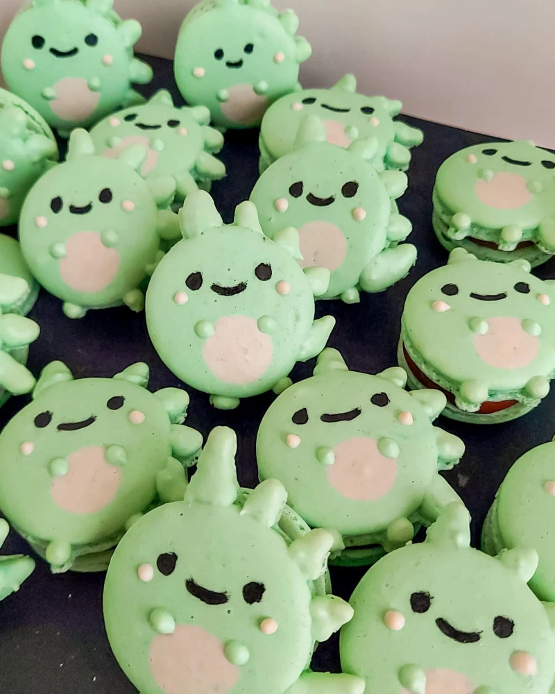 Įvairių formų Macarons sausainiai su pasirinktu įdaru: