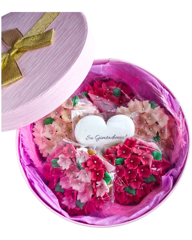 Dekoruotų meduolių dovanų dėžutė “Su gimtadieniu”