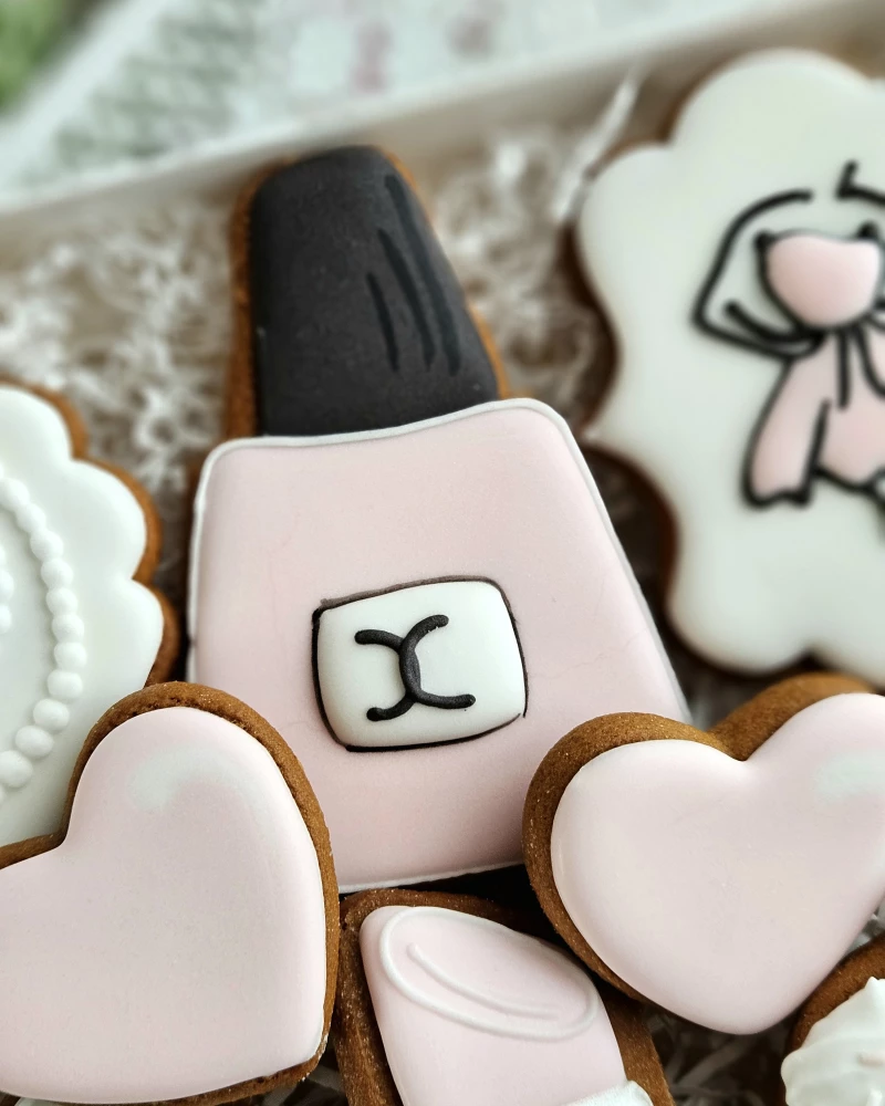 Prabanga dvelkiantis, rankų darbo, dekoruotų sausainių rinknys.