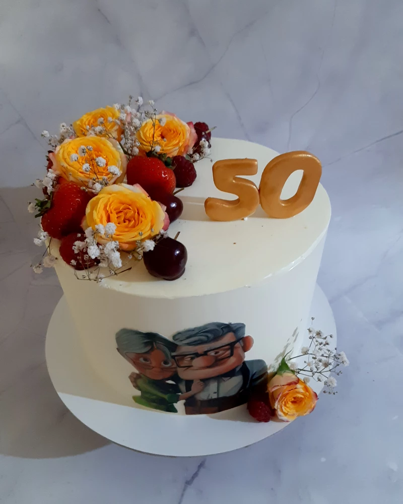 Torto dekoras gėlėmis ir priderintomis uogomis +15 Eur