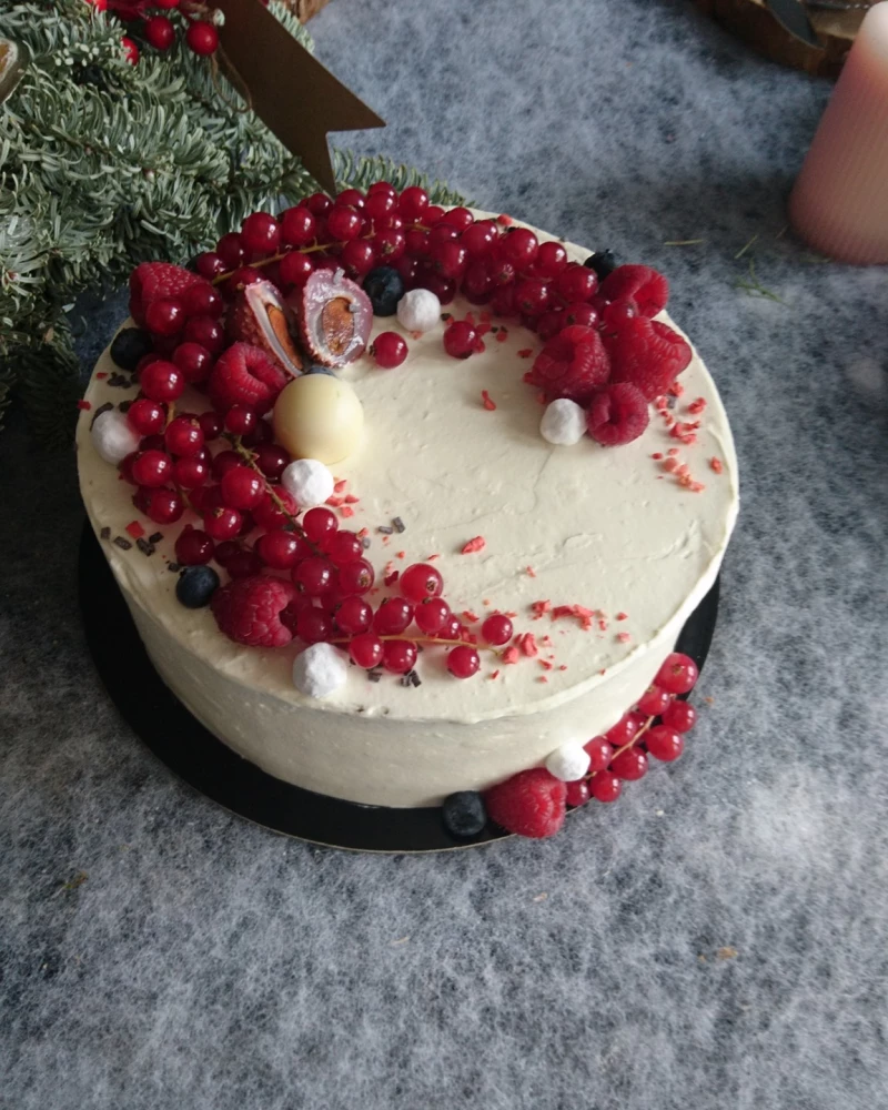 Lengvas ir purus Red velvet biskvitas, perteptas švelniu masKarponės kremu. Pagal pageidavimą gali būti pagardintas uogomis, vaisiais, vaisiniu kurdu arba tiesiog vanile.