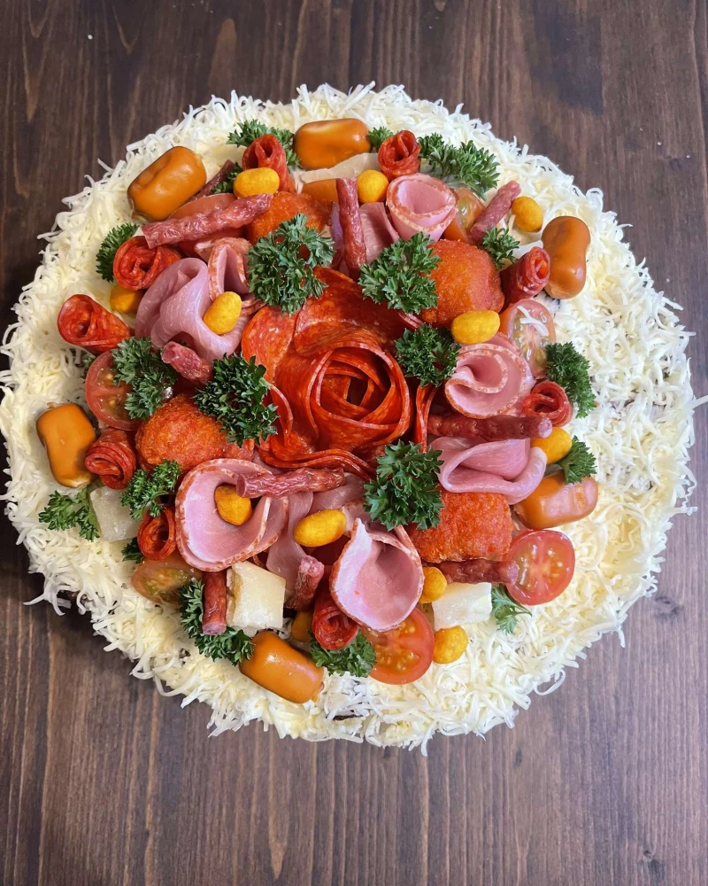 Tortas ant viršaus papildytas sultingais pomidoriukais, aštriu jalapenu, kelių rūšių sūriu bei aromatingu saliamiai – visa tai sujungta į vieną nuostabų duonos tortą!